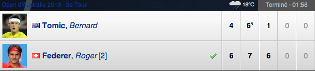Bernard Tomic avait laissé passer sa chance et s’inclinait logiquement face à un Federer, plus efficace au service, plus offensif et toujours aussi décidé à ne pas évoluer au delà de sa ligne de fond de court. Pour autant, il ne semblait pas abattu.